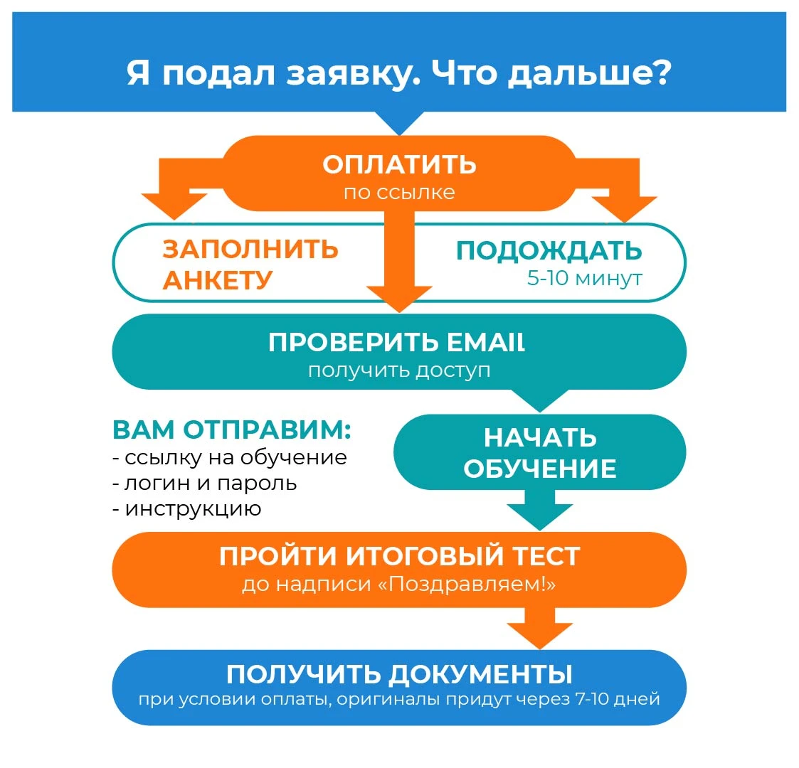 3. Заполнить анкету по ссылке. Эти данные нам нужны для того, чтобы мы смогли передать данные о прошедшем обучении в ФИС ФРДО и направить Вам оригинал удостоверения почтой.
