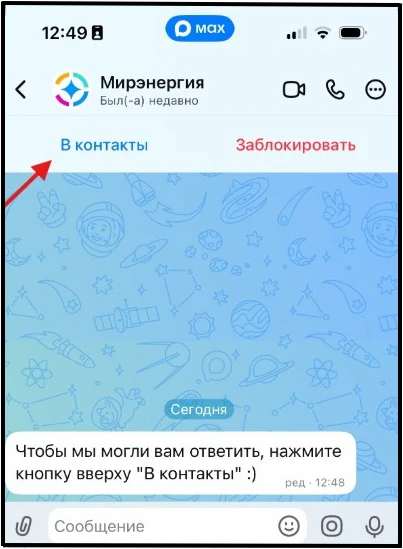 Обязательно добавьте наш номер в контакты в MAX, чтобы мы могли вам написать
