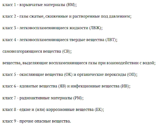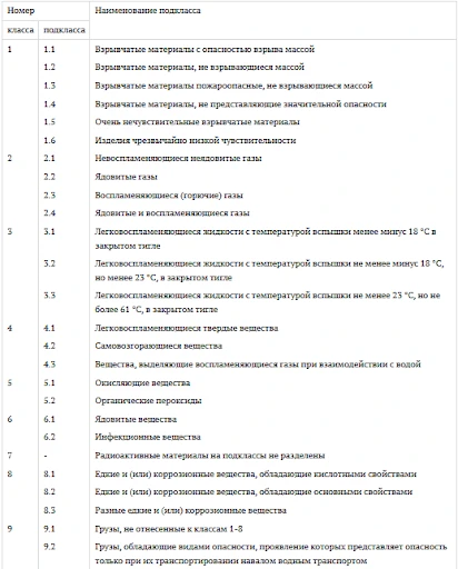 В соответствии с ГОСТ 19433-88 все опасные вещества подразделяются на 9 классов: